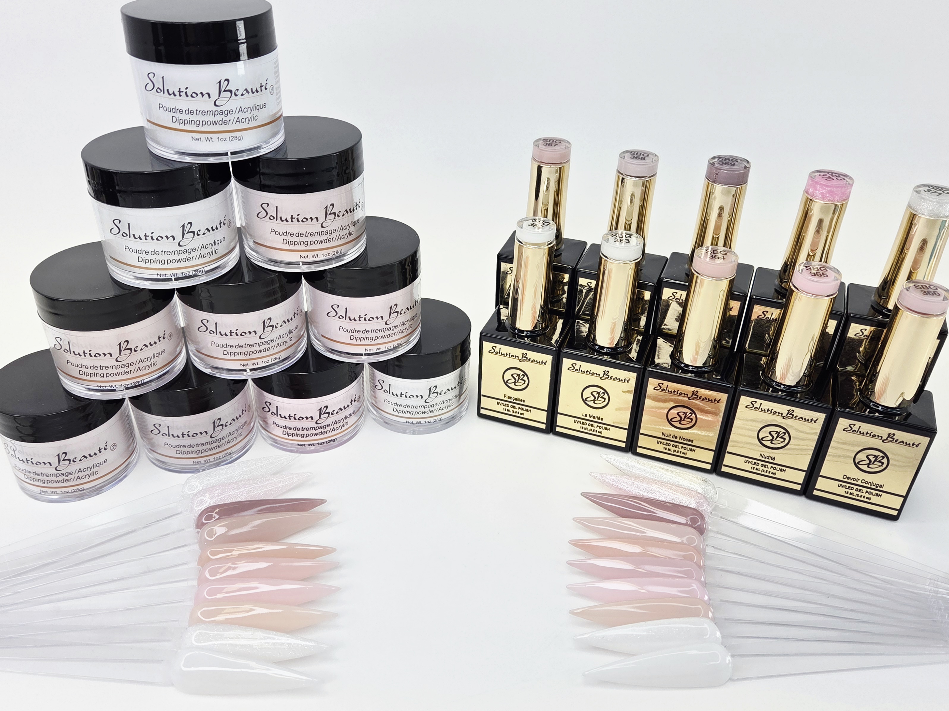 À noter : une légère différence de teinte peut être visible entre le vernis gel et la poudre, étant donné les deux techniques différentes.